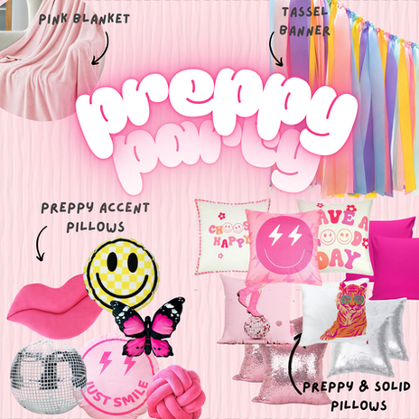 Solid Square Pillows | Preppy Square Pillows | Preppy Accent Pillows | Pink Blanket | Ribbon Tassel Banner | Neon Table Top Lights